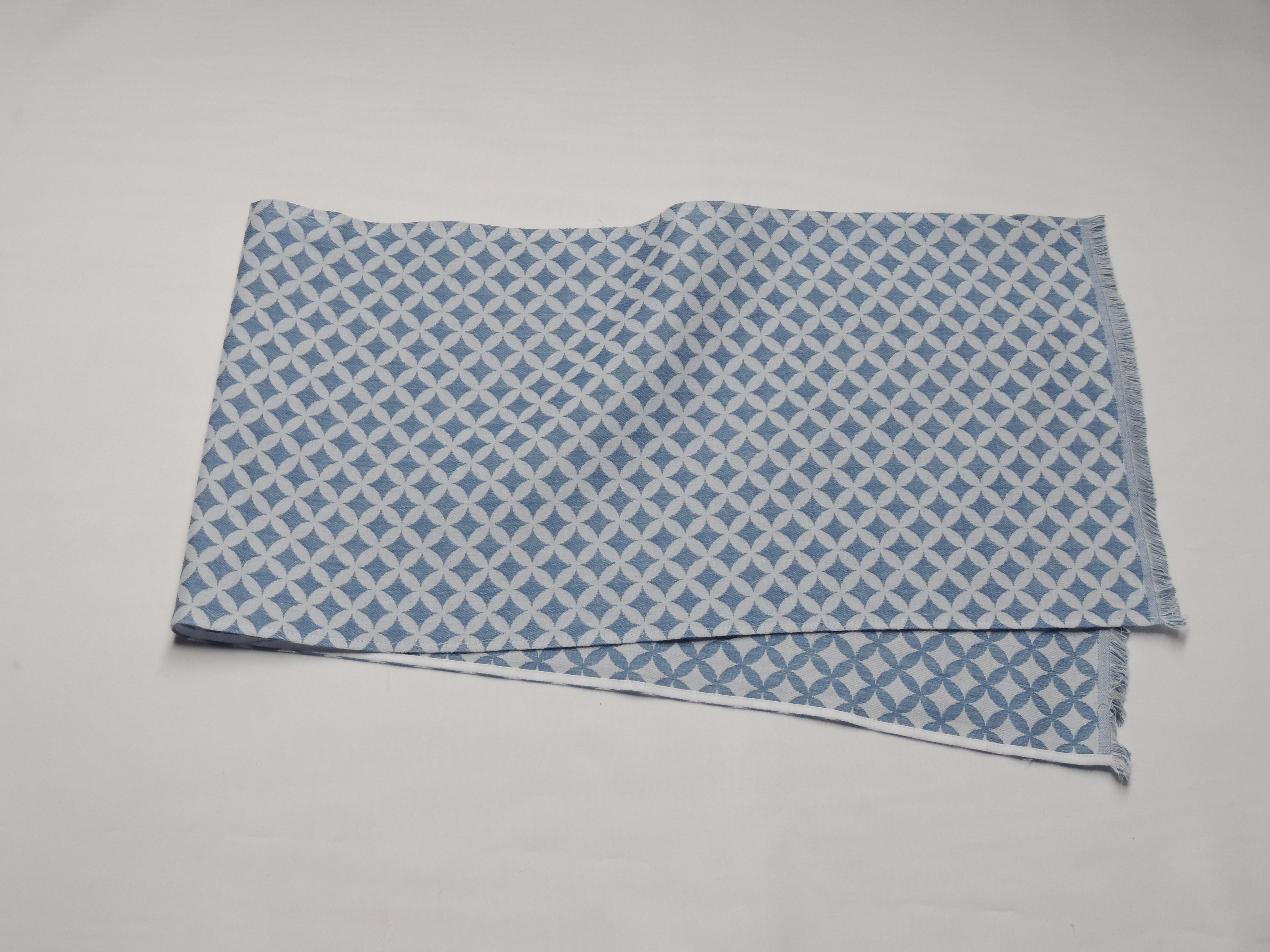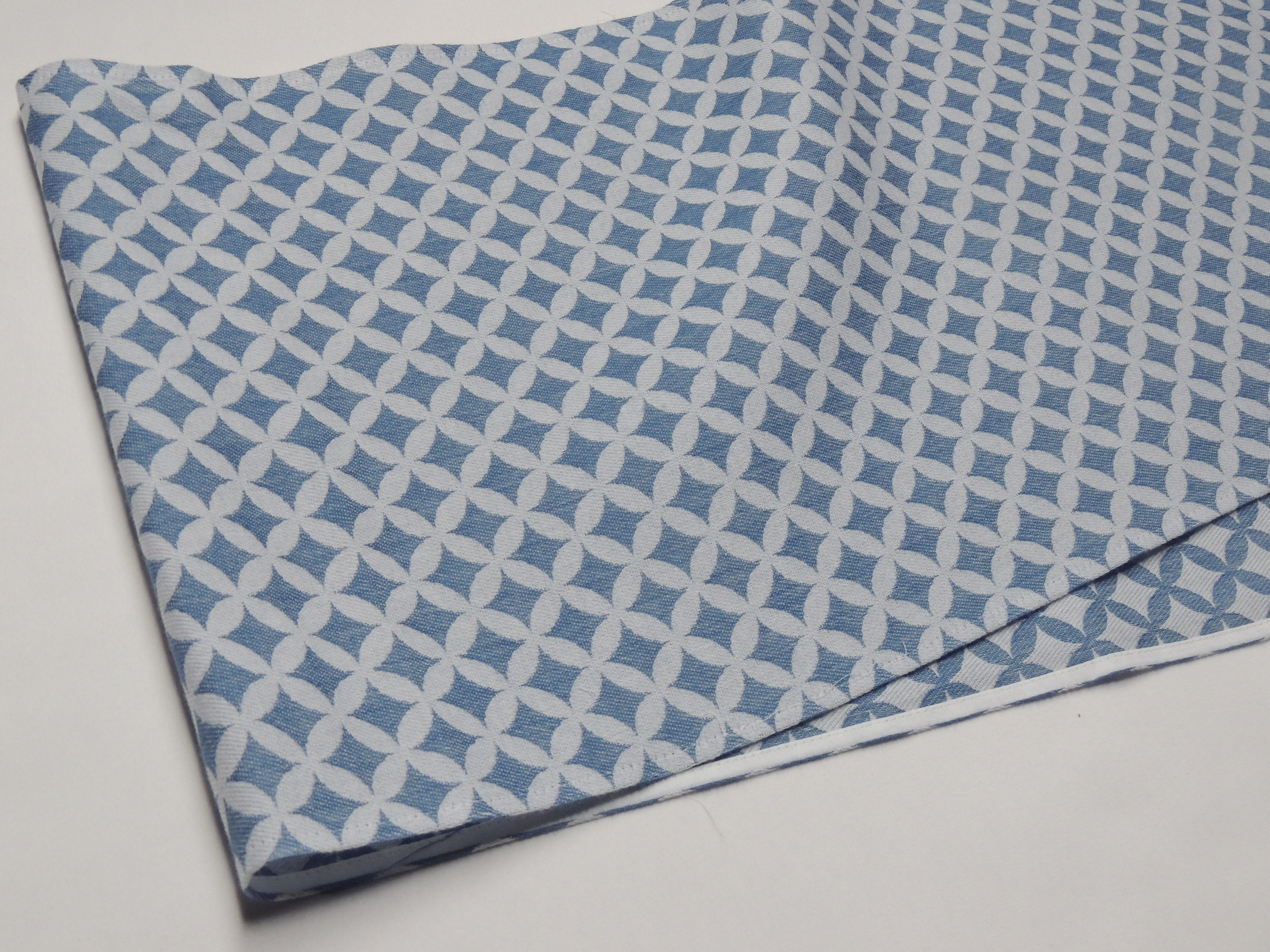 オリヌグイ 播州織の手ぬぐい (日本文様 七宝柄 c/♯レトロブルー)